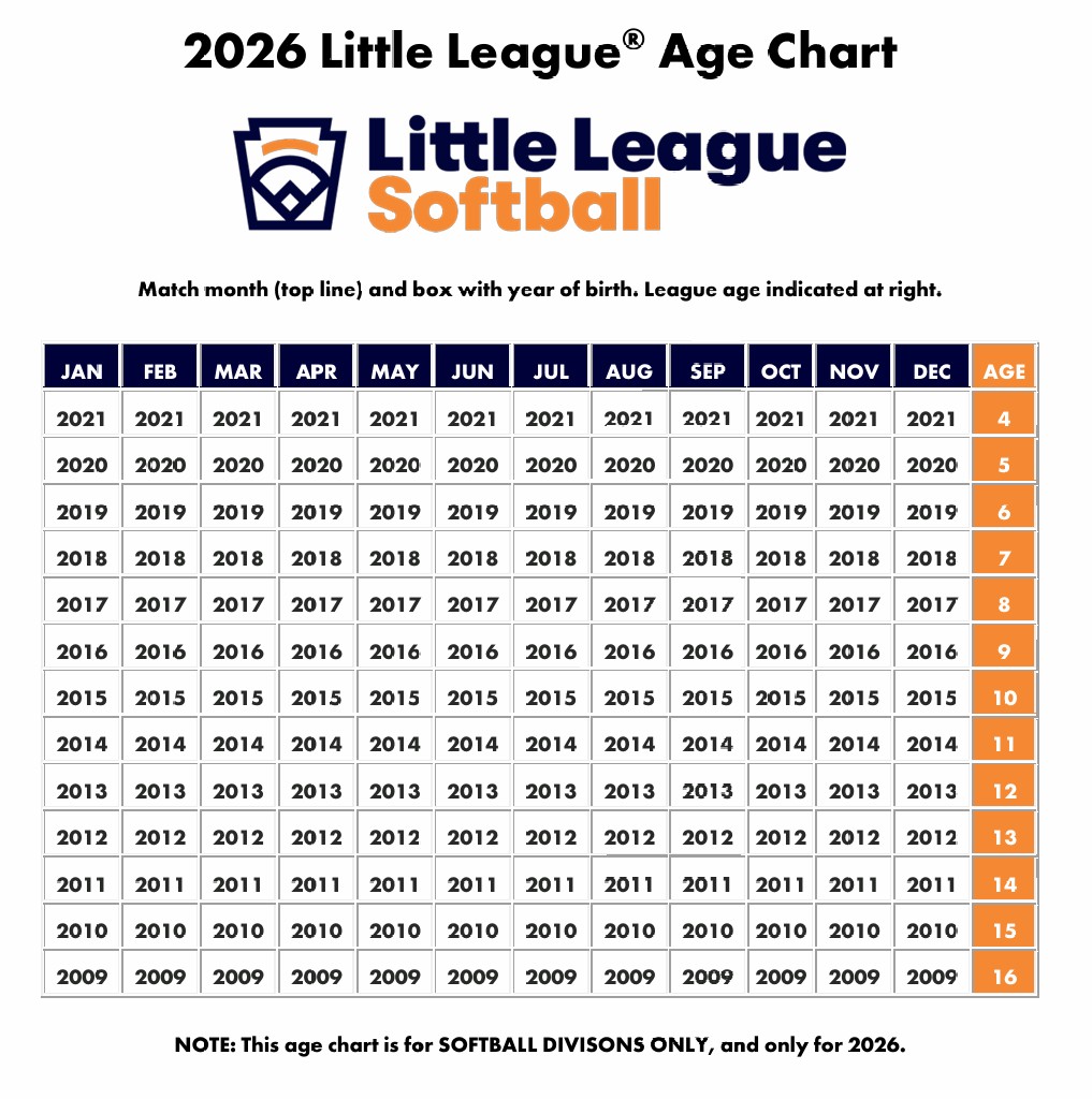 Redmond Little League Softball offers softball for many age brackets by "league age." League age can be determined by using the age chart below. NOTE: Girls playing baseball must use the baseball age chart on this page to determine league age.